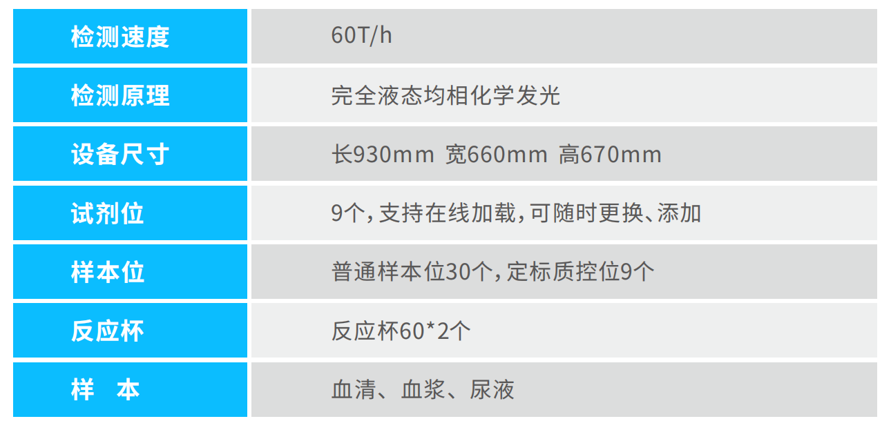 檢測速度: >100個測試/小時